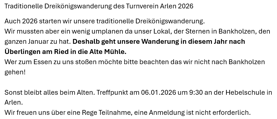 Der TV Arlen freut sich auf Sie!